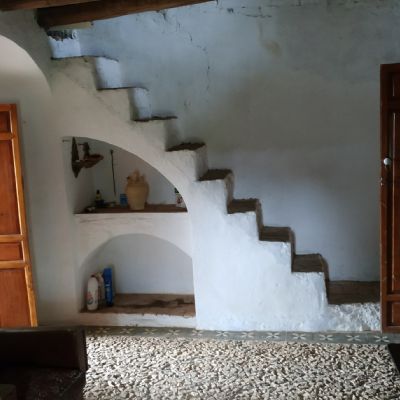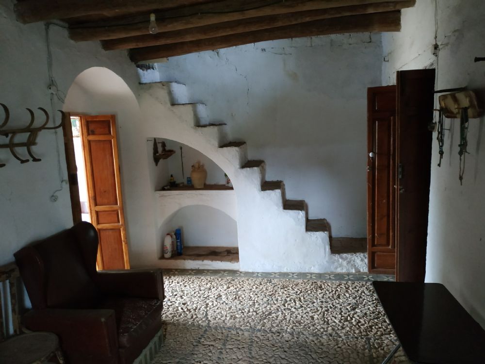 el terreno tiene 2,5 fanegas, (1,6 hectáreas) (16000 m2) pozo con mucha agua para regadío, bomba para extraer el agua, electricidad de red, alberca grande, casa antigua con bóvedas, suelo empedrado con dibujos, totalmente en regla, pagando ibi, además de la casa tiene diferentes naves, para ampliación de casa, animales, garaje o aperos etc y 50 olivos.